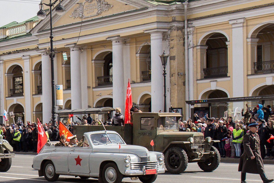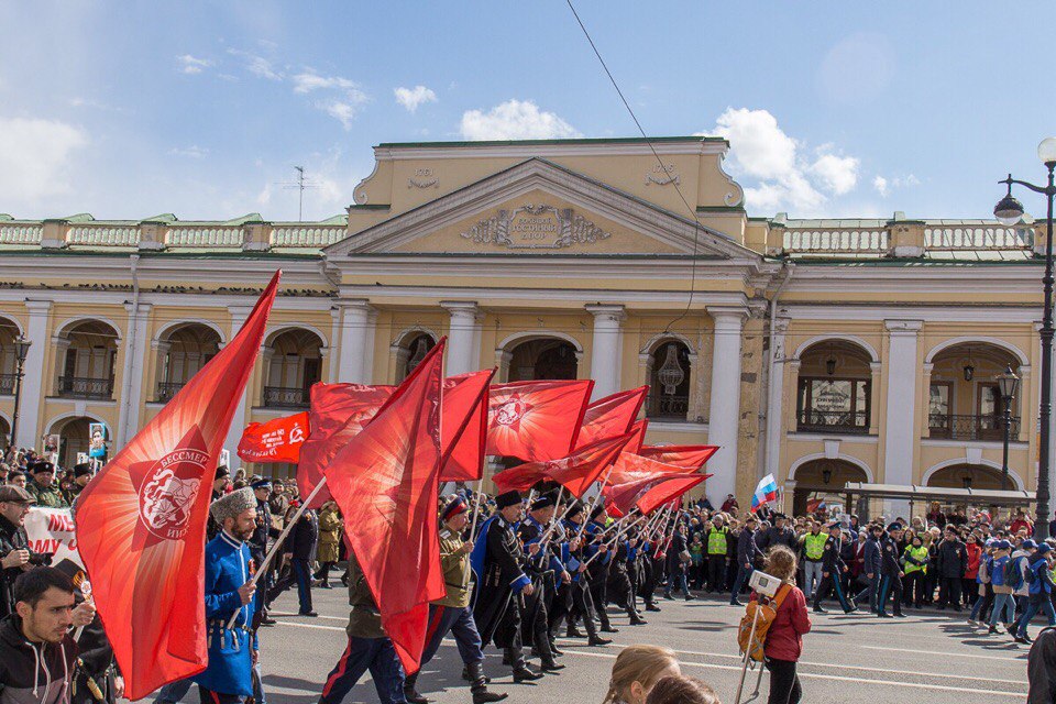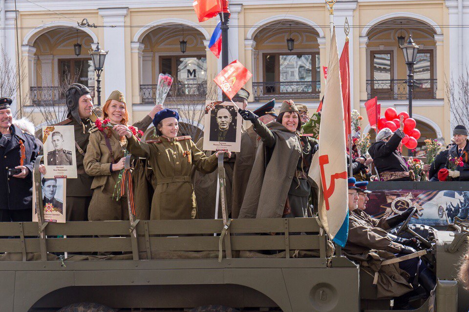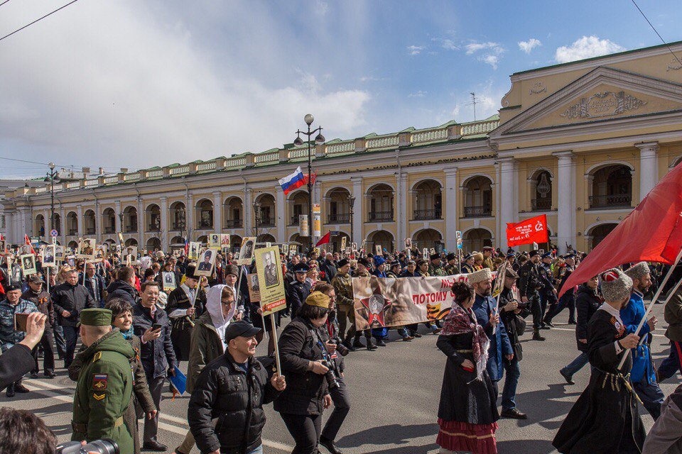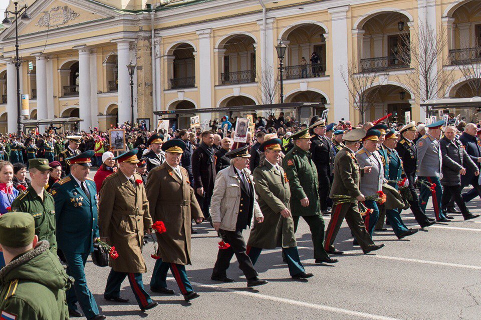 Самым массовым событием, проходящим в этот памятный день, стала акция «Бессмертный полк», которая собрала около 700 тысяч петербуржцев и гостей города. Нескончаемый людской поток с портретами ветеранов в руках начал формироваться у Суворовского проспекта в середине дня. Маршрут «Бессмертного полка» пролегал по всему Невскому проспекту до Дворцовой площади. Перед началом акции по главной улице города проехала колонна ретро-автомобилей военного времени, они везли участников Великой Отечественной войны, ветеранов фронта и тыла, блокадников. Вслед за ними начала движение колонна участников акции, которые под песни военного времени несли портреты своих дедов и отцов, погибших на фронтах или вернувшихся домой с победой, но не доживших до ее 72-й годовщины. Безопасность мероприятия обеспечила Народная Дружина, организованная под началом Охранной Фирмы «ТИТАН».